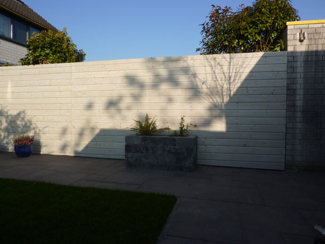 Voortuin, achtertuin, bestrating, beplanting, schutting